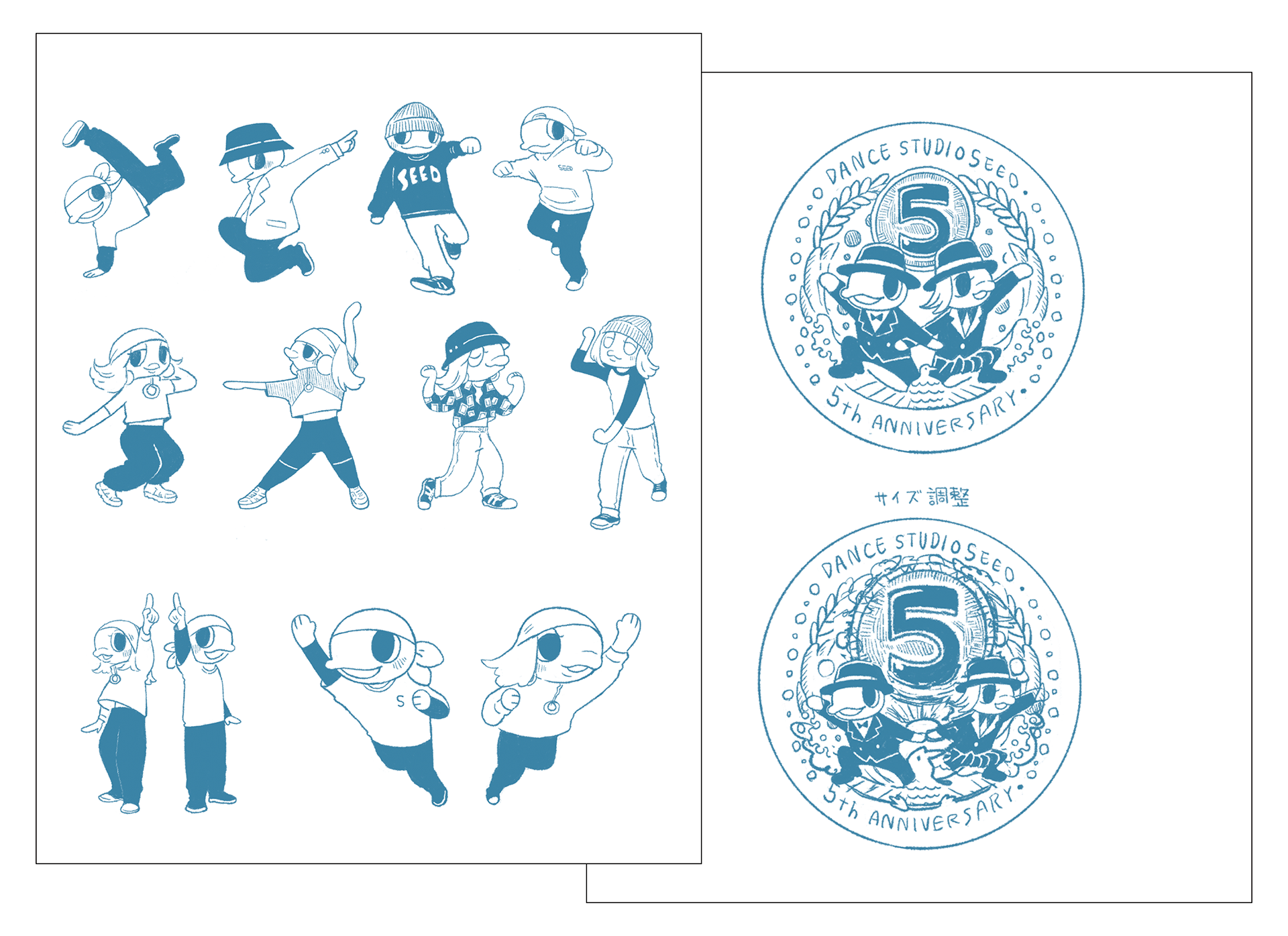 DANCE STUDIO SeeD様 5周年記念のステッカーデザインとキャラクターデザインを担当させていただきました。